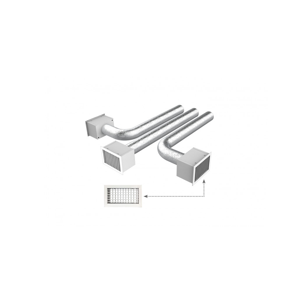 • 1 valge alumiiniumist sisselaskevõre filtri paigaldusavaga 600 x 400 mm, välismõõt 632 x 432 mm